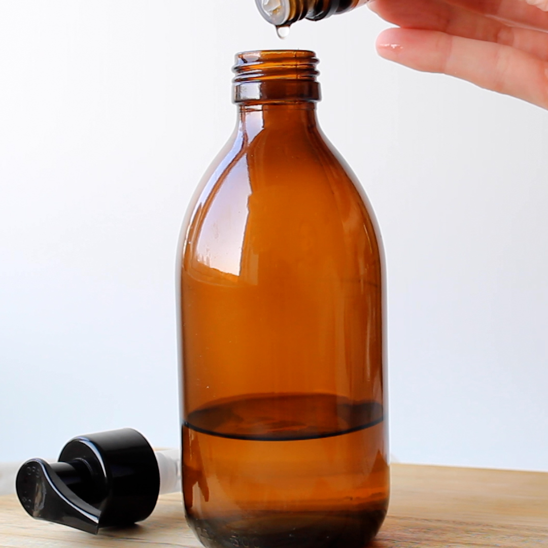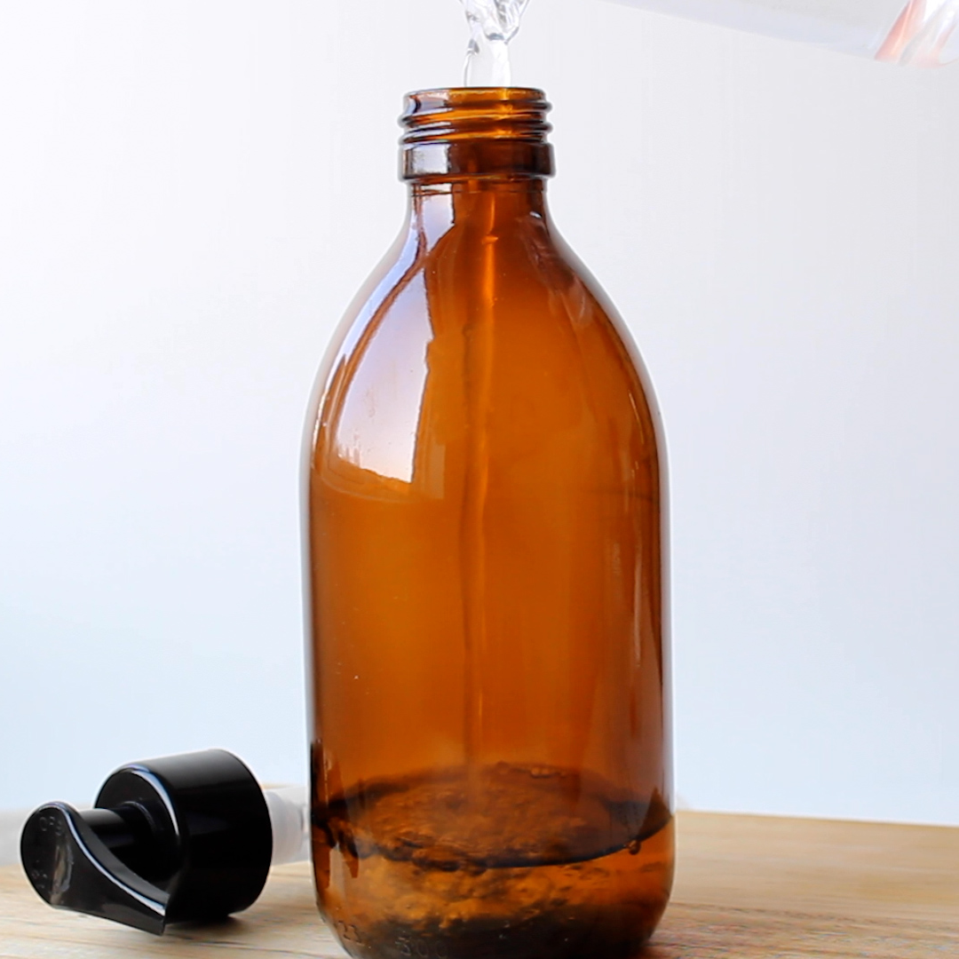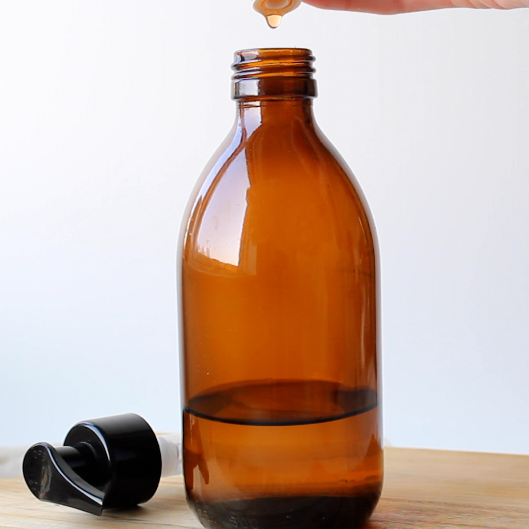 Jeg har brugt en meget stor flaske til denne portion, da det var det eneste jeg lige havde ved hånden. Du skal bruge en flaske på mindst 100 ml. Du kan også vælge at fordoble portionen.