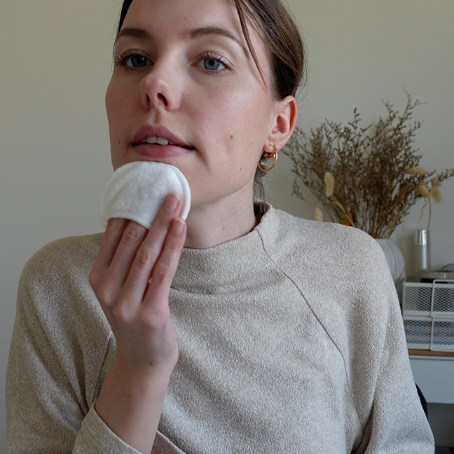 Gør en rondel våd med micellar vandet og rens huden som du plejer. Hvis du skal fjerne mascara er det en god idé, at lade rondellen hvile kortvarigt på vipperne, for at produktet opløser mascaraen. Derefter renser du mascaraen af, som du ellers ville gøre med andre produkter.