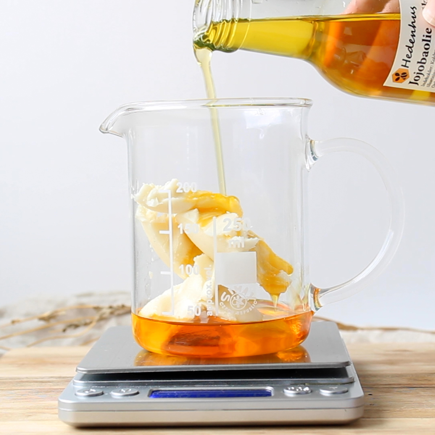 – Jojobaolie har en tæt kemisk sammensætning som passer perfekt til hudens egen talg og er derfor meget nærende for huden.