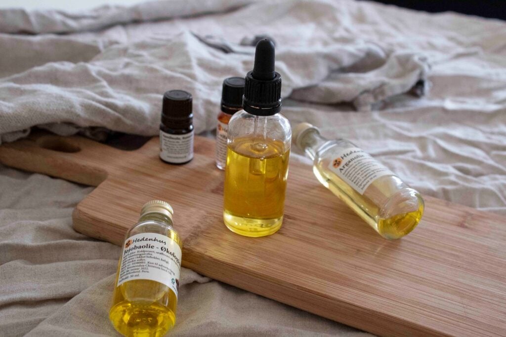 Du kan lave hjemmelavet serum efter dit eget valg og din hud type. Du skal blot vælge 1 til 2 olier og derefter dine yndlings æteriske olier. Men glem ikke vitamin E olien, eftersom den hjælper med at beskytte hudcellerne og membraner mod skader. Samtidig har E-vitamin olien en naturlig anti-oxidering af vegetabilske olier således, at levetiden på vores hjemmelavet kosmetiske produkter forlænges.