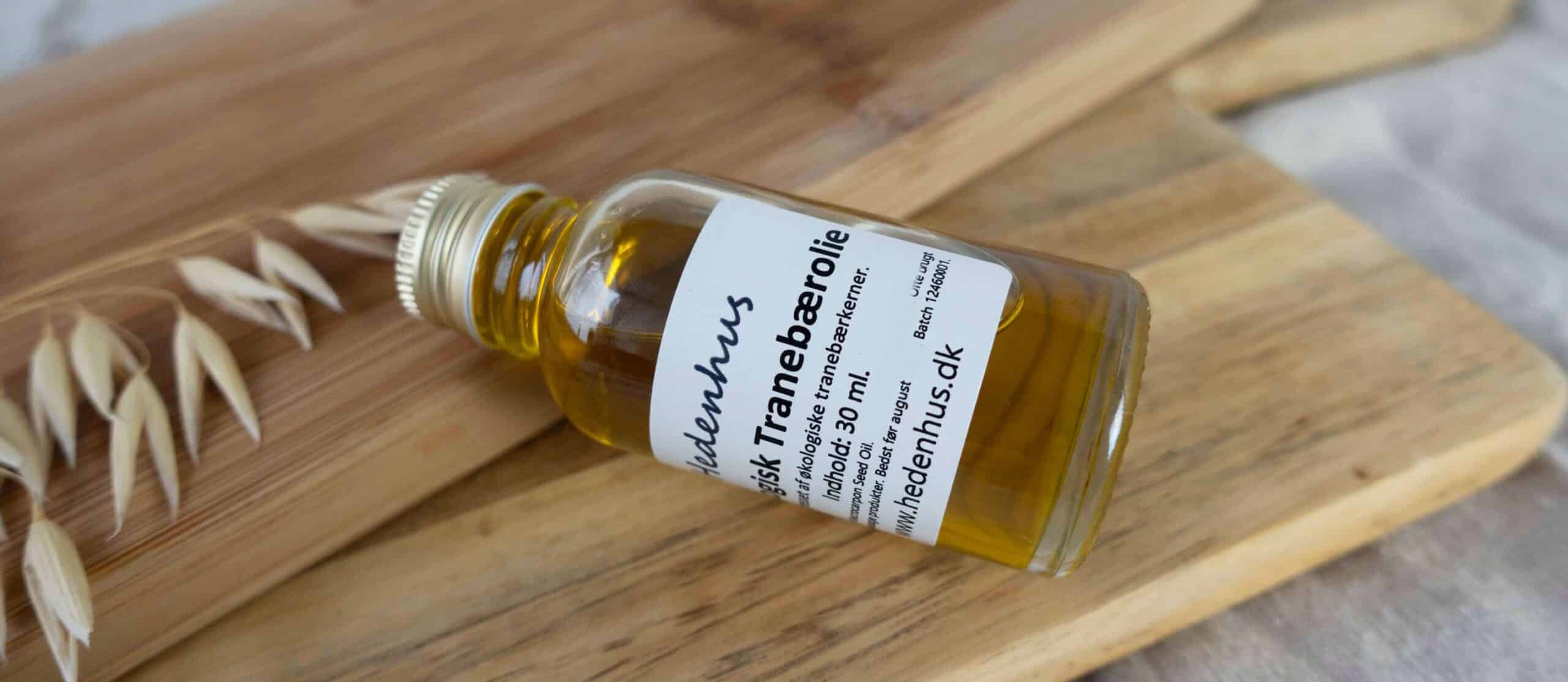 Vores Tranebærolie eller Tranebærkerneolie er økologisk og koldpresset fra tranebær kernerne. Olien har en lys guldgrøn farvetone med en behagelig, let frugtagtig, sød vegetabilsk oliearoma. Du vil se det bedste resultat på huden, ved at tilføre olien udvortes og lokalt på det område som du ønsker at pleje.