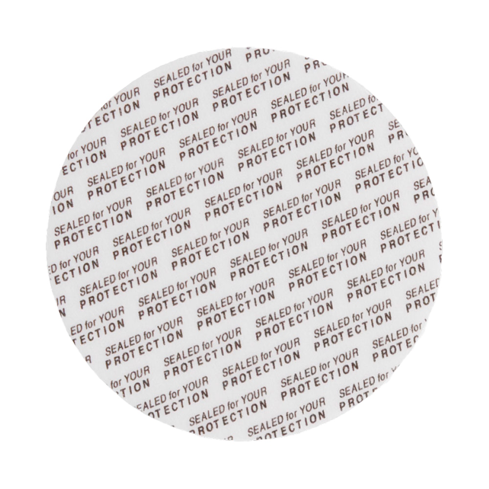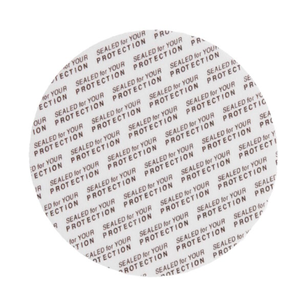 Skiven er påtrykt teksten “Sealed for your protection”, som tydeligt kommunikerer forseglingens formål til slutbrugeren.