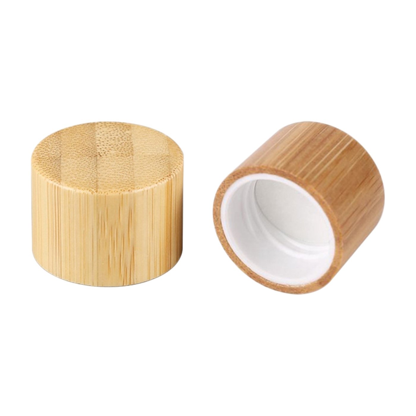Skruelåg i bambus, med en kerne af pp plast, låget har desuden en indvendig skumpude så den slutter tæt.